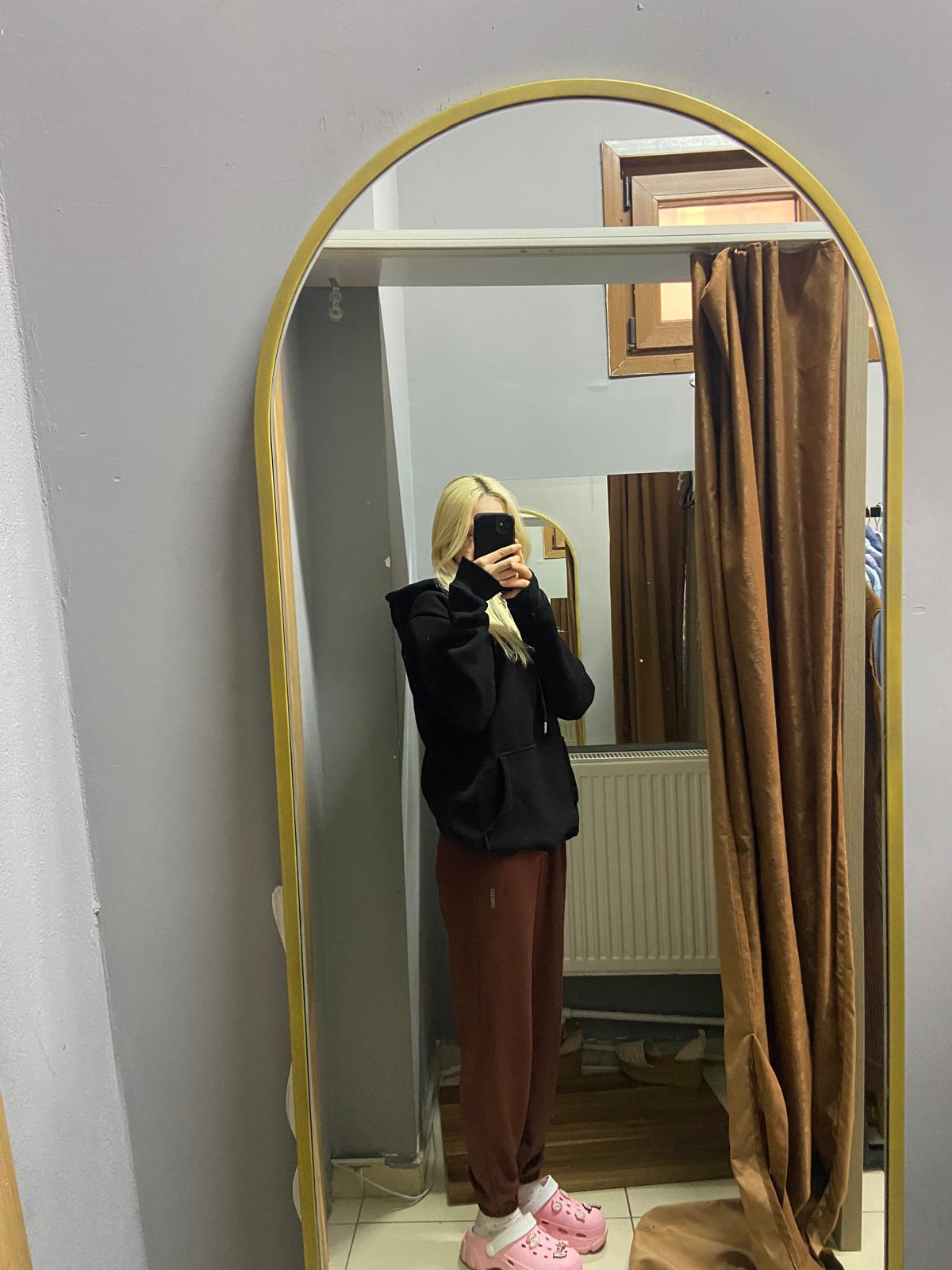 Eşofmanın alt ve üst kısmı ayrı olarak satışa sunulmaktadır, bu sayede beden uyumunuza göre kombin yapma özgürlüğü sunar. Üst kısmında bulunan düşük omuz kesimi sayesinde, modern ve rahat bir görünüm sağlar. Ayrıca, yarım fermuarlı kapüşon detayı ile de tarzınızı tamamlayabilirsiniz.